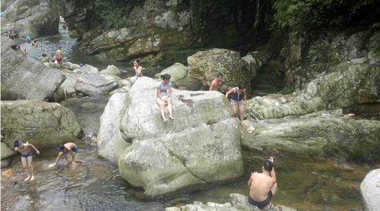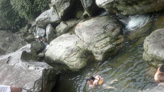 基本10点30分到达了,12点,吃完爽口的农家乐,就在桥下的水潭泡水,冰凉泉水,去除暑意,情侣泡水你侬我侬,亲子泡水加强母子感情多接触大自然。