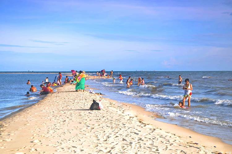 一个小渔村,有洁白的沙滩,沙滩上还有松树,到处都是吊床,露营,玩耍的好地方,树下吹着海风打牌,打麻将是很舒服的