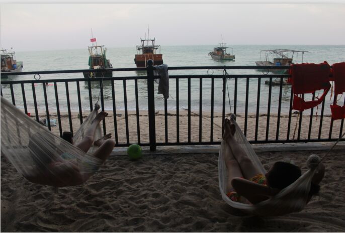 到处是吊床,玩累了,趟在吊床上吹吹海风吧